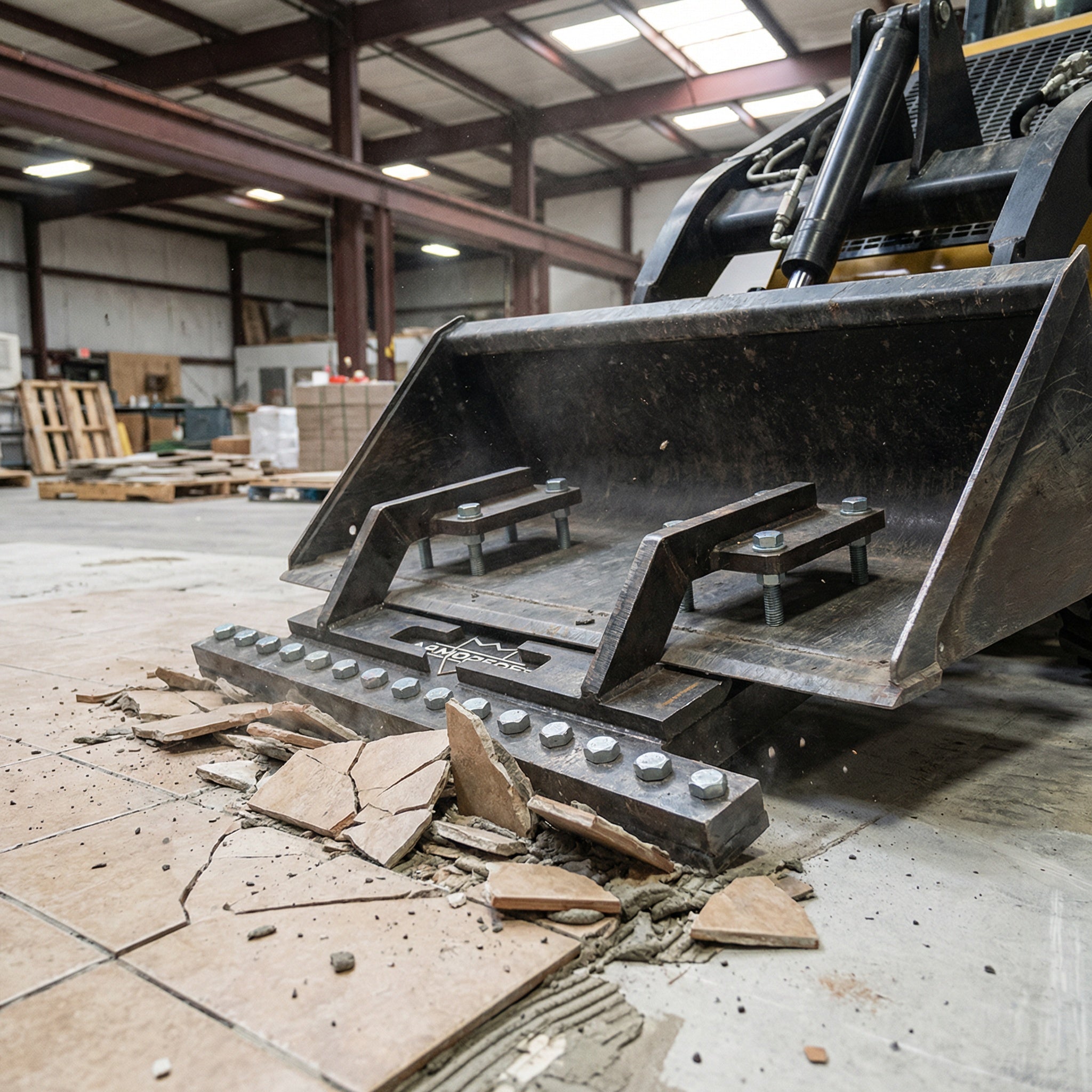 The toughest skid-steer floor scraper attachment in the flooring/coating removal industry