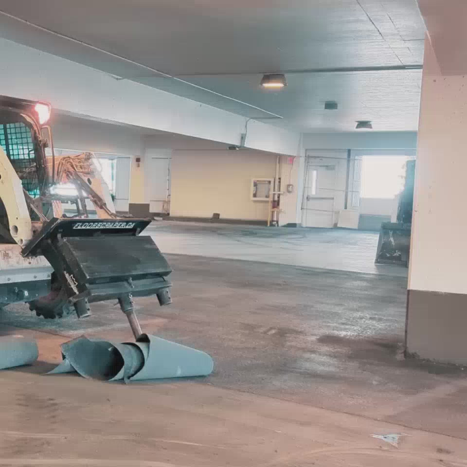 A ride-on floor scraper is designed to quickly remove flooring materials and coatings such as tile, asphalt, epoxy, thinset, waterproofing membranes, and carpet. By attaching to your skid steer, the XDS provides far more power and efficiency than walk-behind or handheld scrapers.